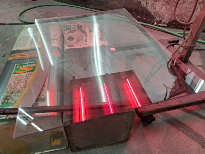 引先のペイントハウスヒットさんに協力をお願いし、既存ガラスの形に合わせてアクリル板をセット。