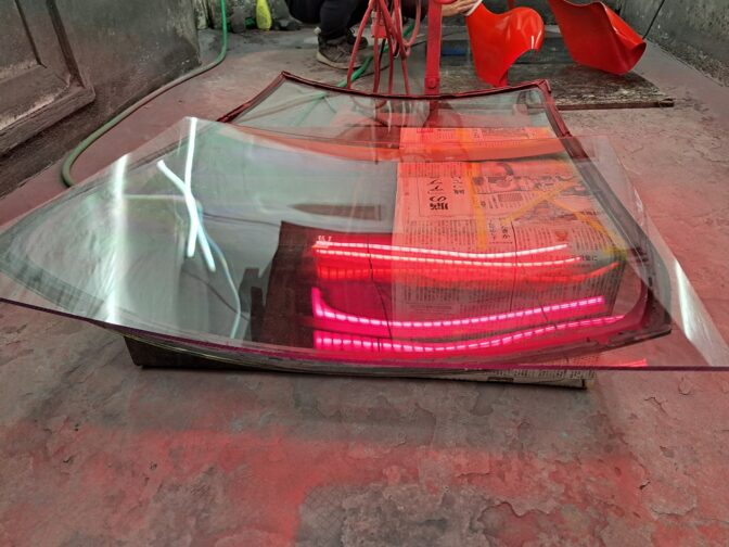 代替としてアクリル板を選び、厚みのある5mm板を採用しましたが、2次曲面への曲げ加工方法が見つからず1か月ほど放置することに。