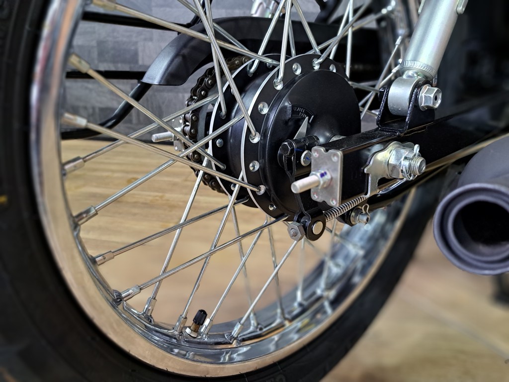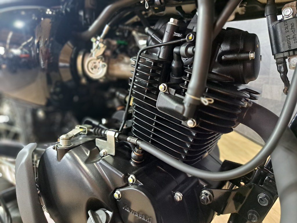 シンプルで美しい丸目ヘッドライトに、空冷単気筒エンジンならではの味わいある走り。